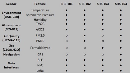 The SHS-101 onboard CCS811 module supports multiple measurement modes that have been optimized for low-power consumption during an active sensor measurement and idle mode extending battery life in portable applications.